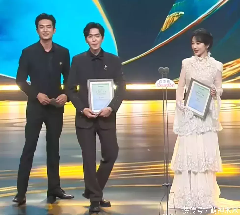 和杨紫一起上台的张若昀倒是挺乐呵,整个人异常轻松,还在台上一不小心露出了看热闹的表情,看来是早早做好了围观其他人争奖的准备啊。